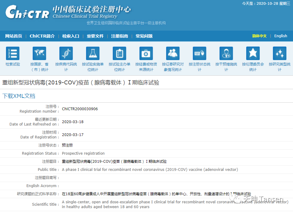 我國軍科院陳薇院士團隊的重組腺病毒載體疫苗3月16日獲批展開臨床試驗;